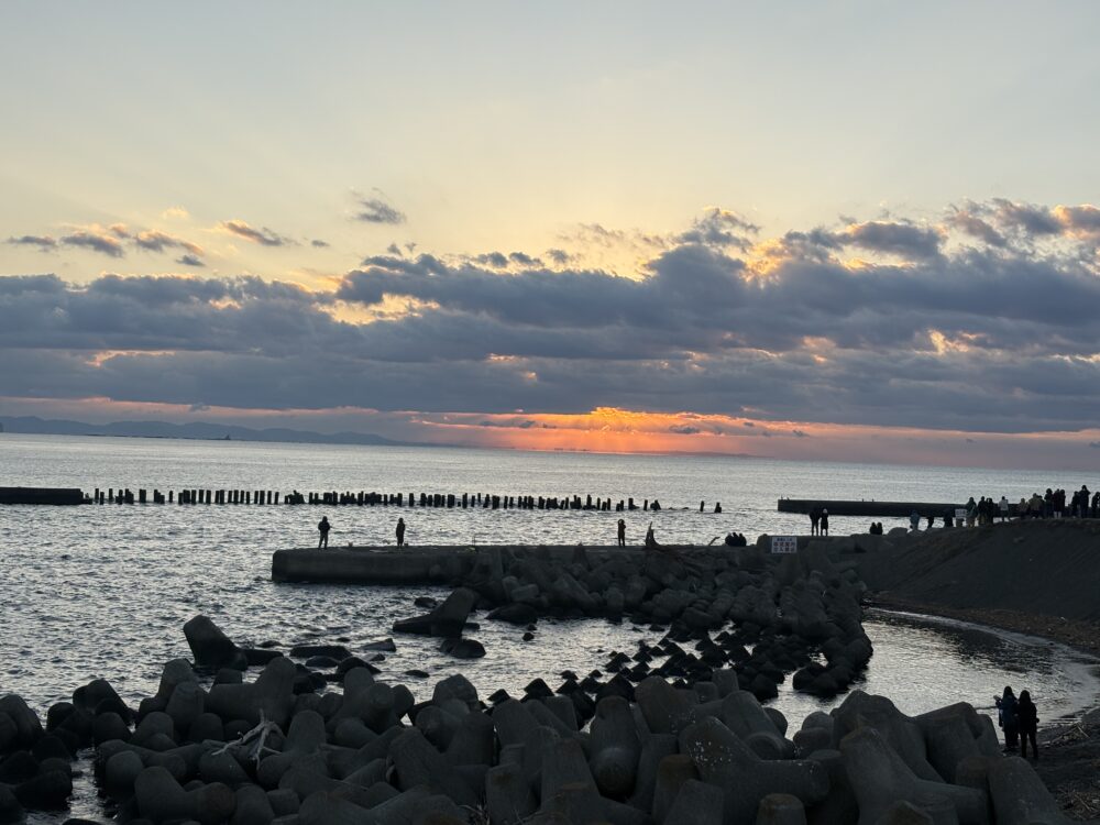 今年は、水平線付近が結構雲に覆われていて、海からスッと昇る朝日を見ることはできませんでした。
