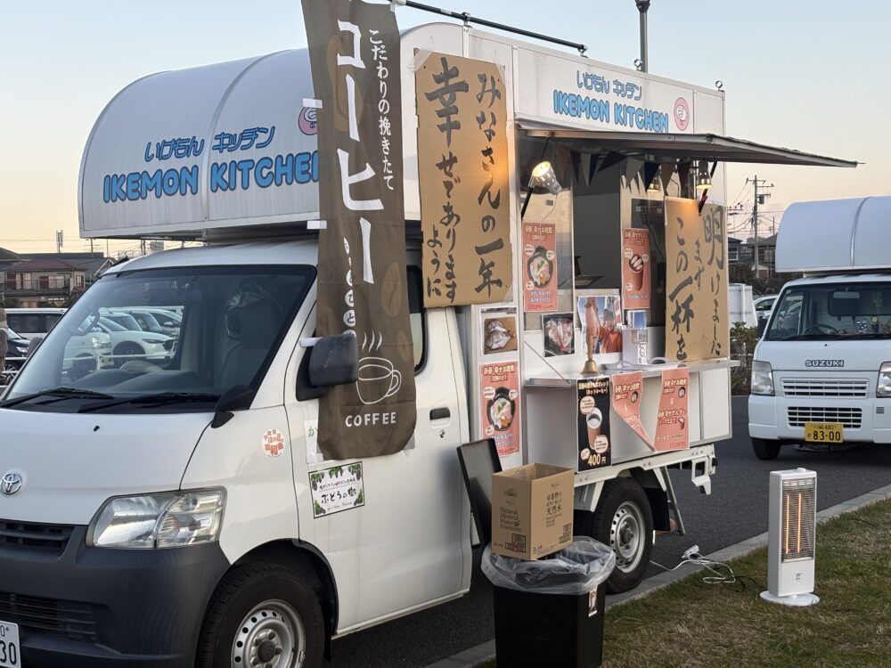 すでに何軒かキッチンカーが出ていて、正月らしい賑わいがあります。