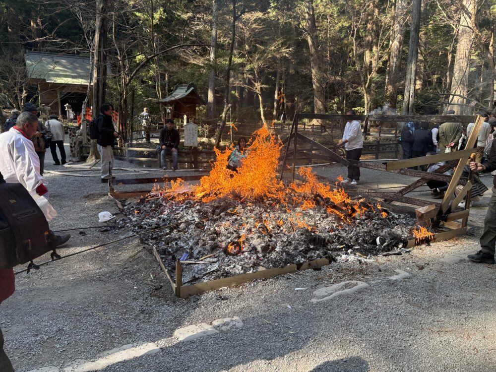 境内ではどんど焼きが行われていて、