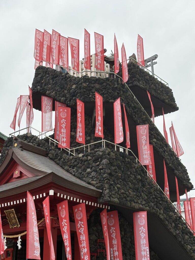 その鳥居をくぐり抜けながら進むと、ちょっとした溶岩の山のようになっている