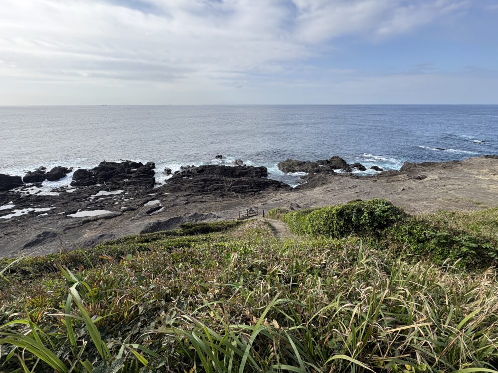 ちょっと高台になった展望台から荒々しい海を見下ろして缶コーヒーで一息入れます。
