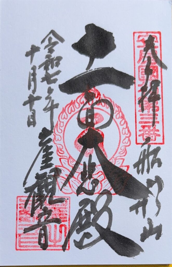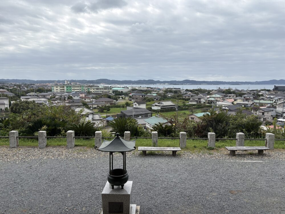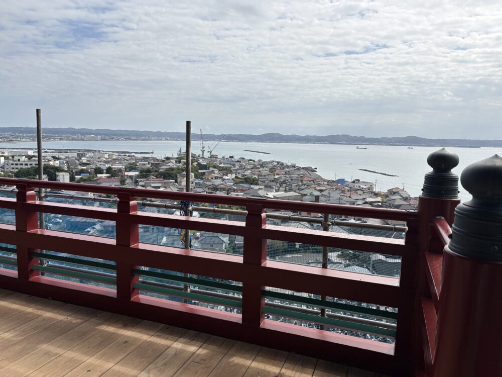 昨年の11月に最初の御朱印をもらったことを思い出しながら、本堂前から館山湾を眺めます。