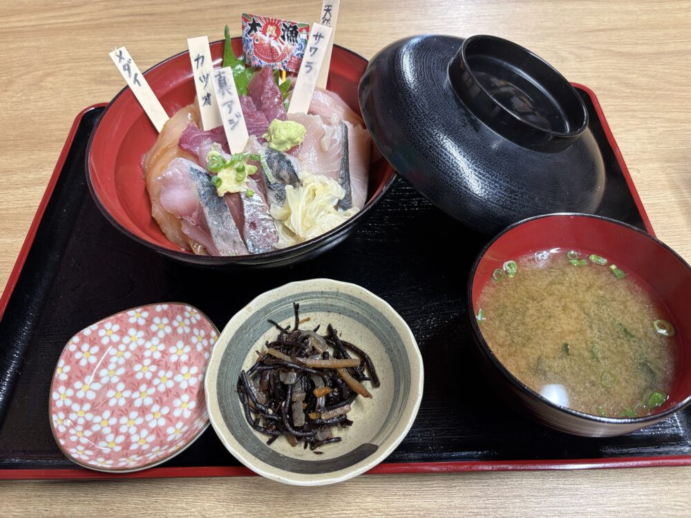 いろいろな種類の刺身がのった「おまかせ丼」をチョイスしました。