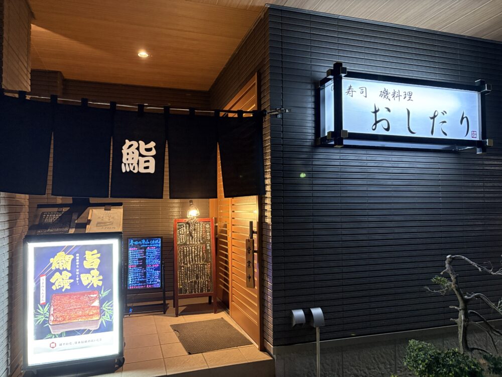 日も傾き始め、宿の近くにある寿司屋「おしだり」で夕食をとります。