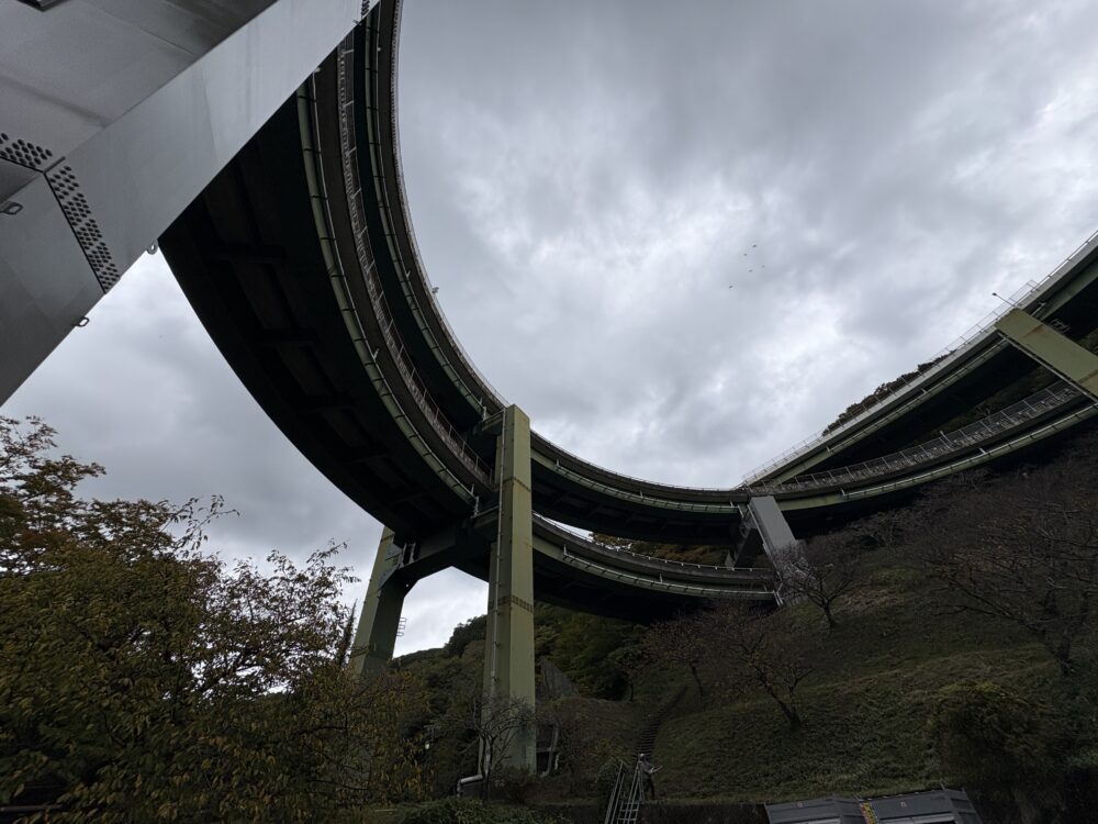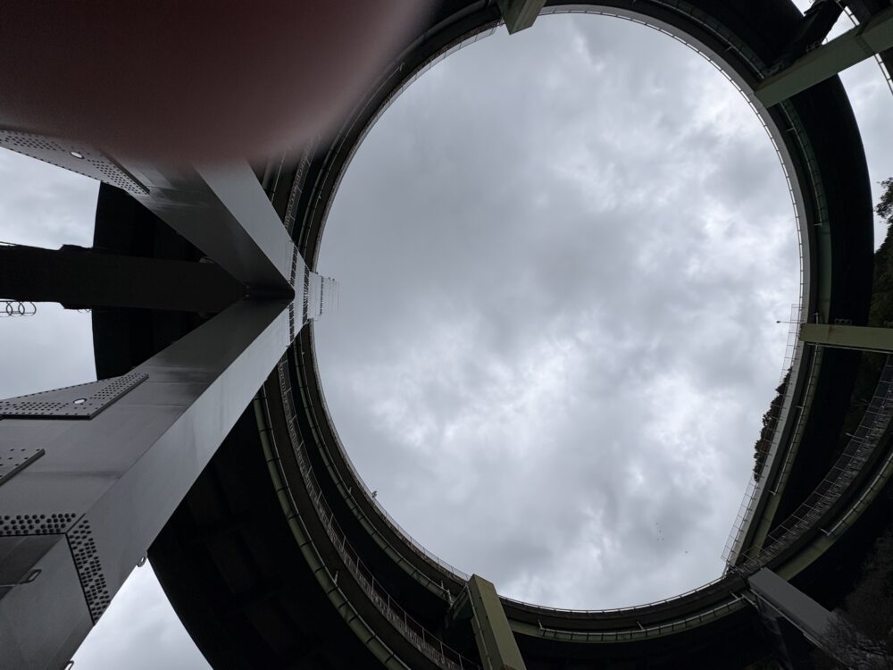 だいぶ雲が増えてしまいましたが、下から見上げるループ橋はなかなかの迫力でした。