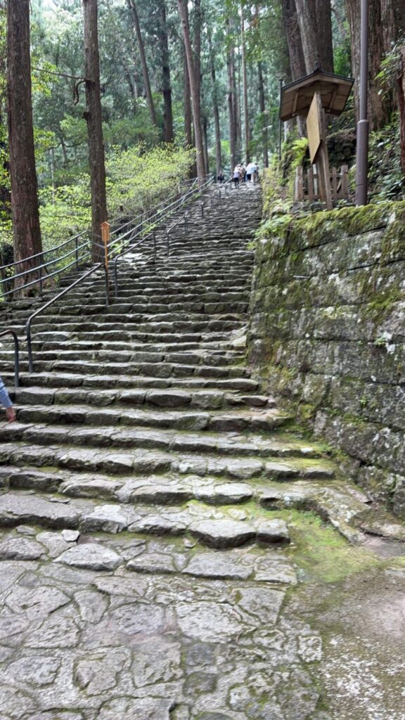 気を取り直して進むと、参道から見上げる階段が現れ、思わずため息が漏れます。
