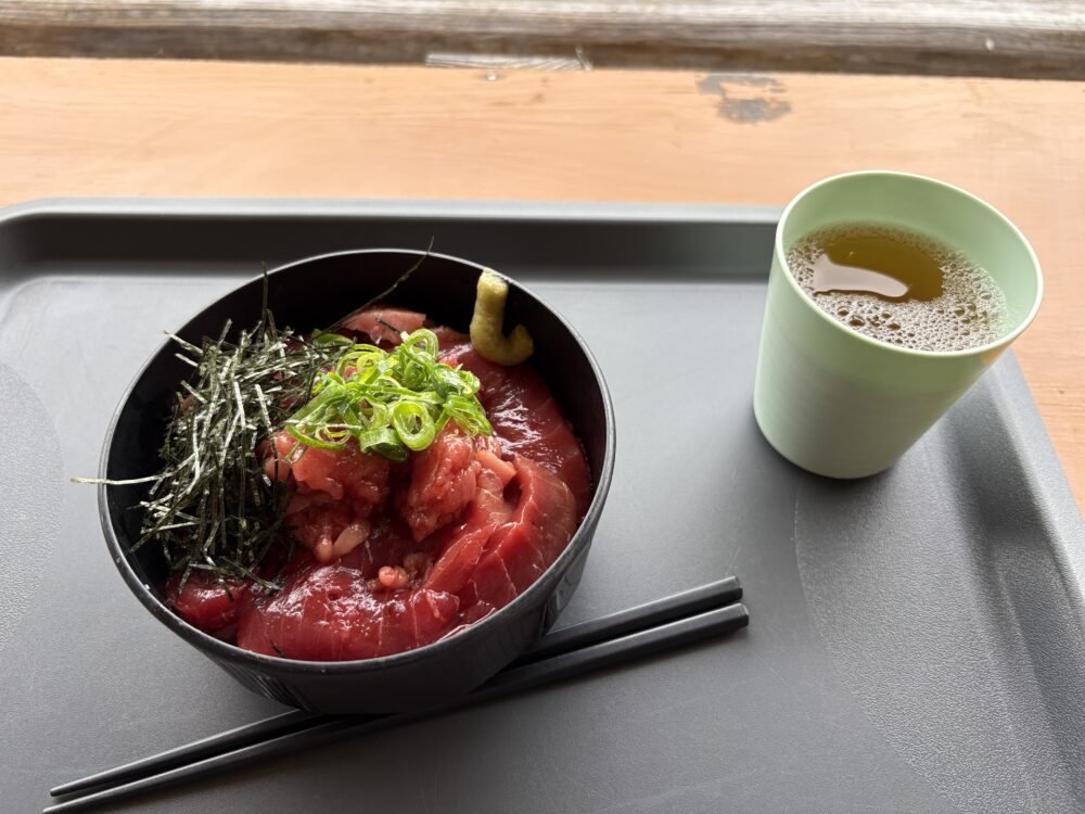海を眺めながらテラス席でいただくマグロは格別でした。