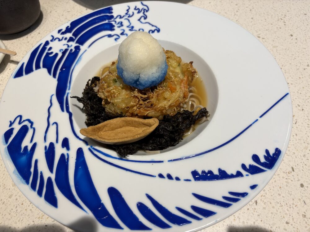 私は「冨嶽三十六景 神奈川沖浪裏蕎麦」と「北斎 抹茶ラテ」。