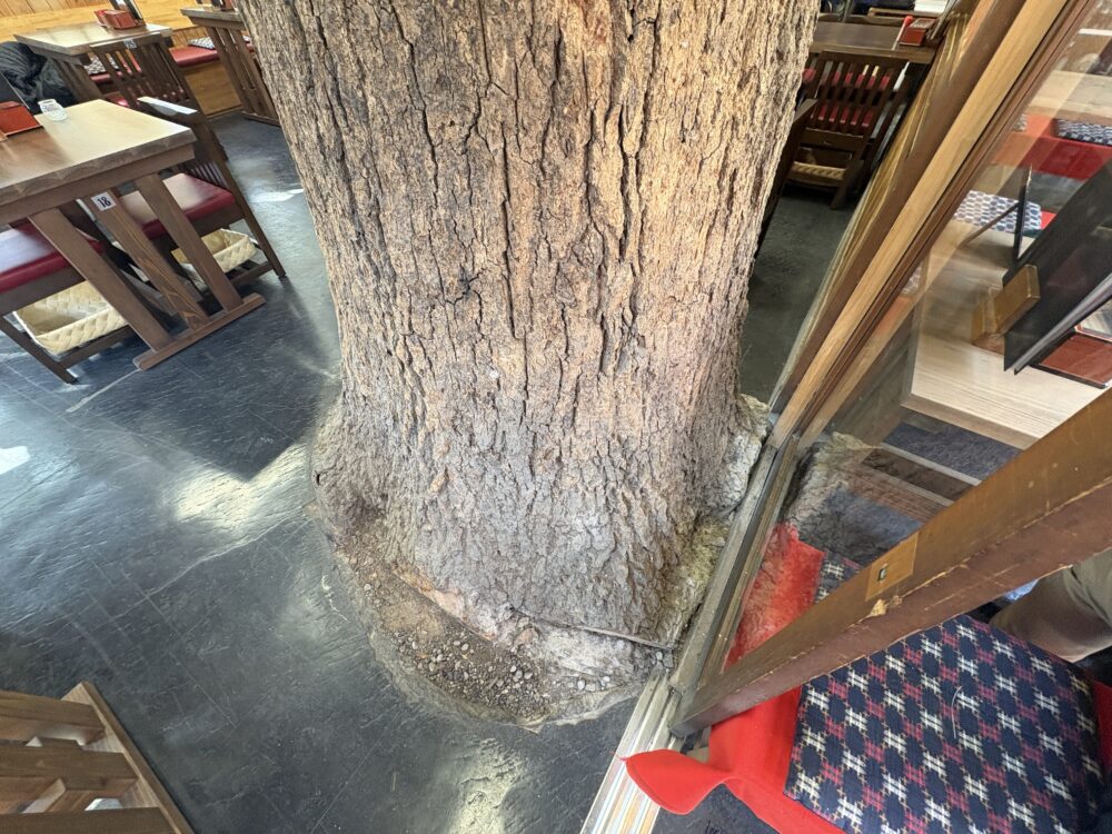 北門を出たところで少し早めのランチタイム。今回は、大きな「こならの木」が店内にそのまま残っていることで有名な**「松葉茶屋」**にお邪魔しました。
