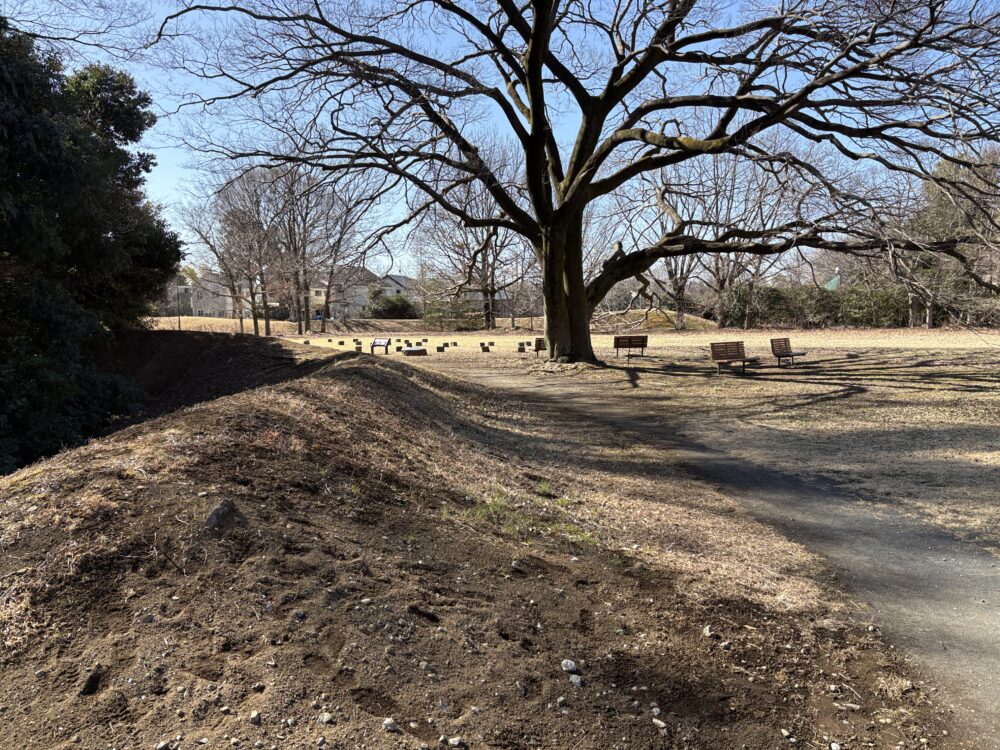 水生植物園の奥にある小高い丘。想像以上に広く、芝生が広がる開放的な空間でした。